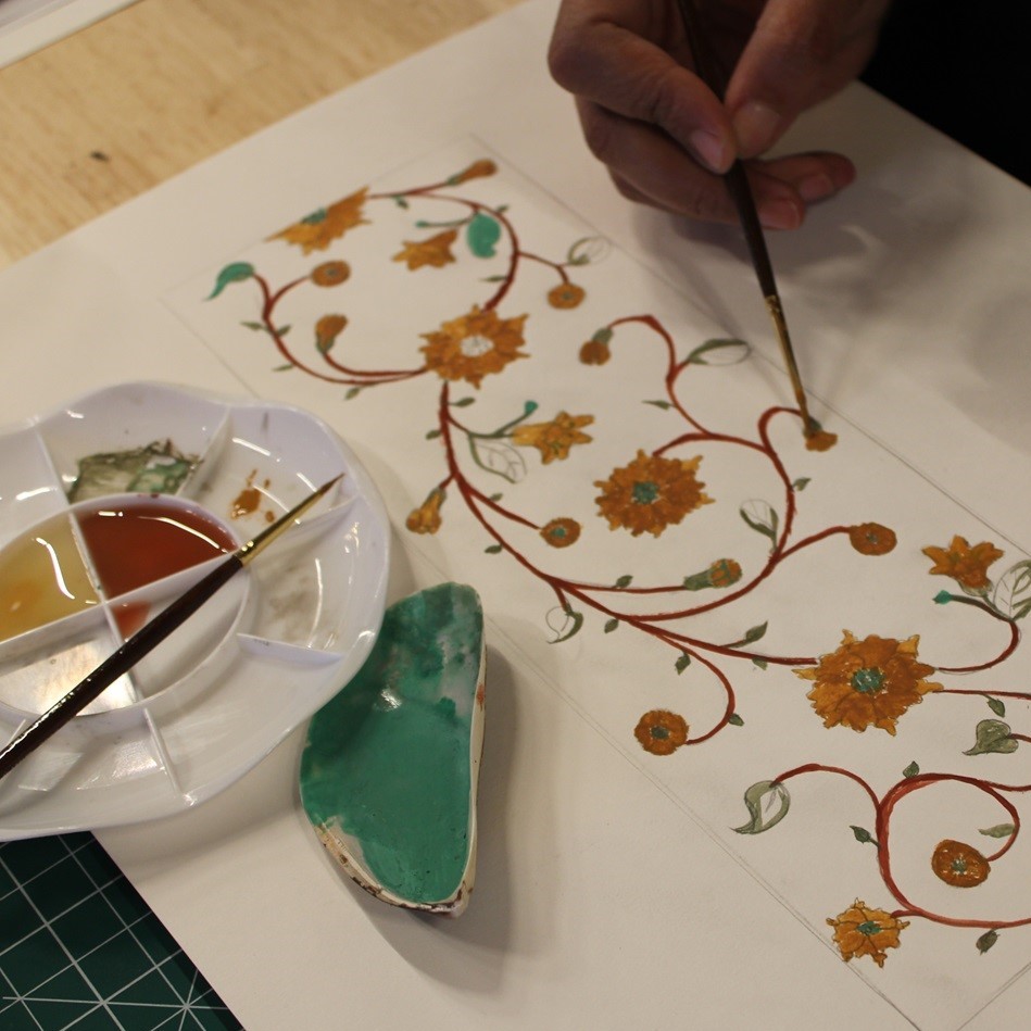 A range of courses are included under this topic, including Contextual Decorative Design, Methods and Materials, Egg Tempera Painting, and Gilding, along with various traditional painting techniques found in the region and its neighboring areas.